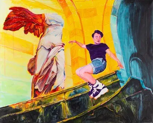 Дина впечатлява не само с огнените цветове на своите картини, но и с трудния път, който е избрала – да се превърне в мъж. Стоев довери, че вече е на финалната права на своята трансформация.
