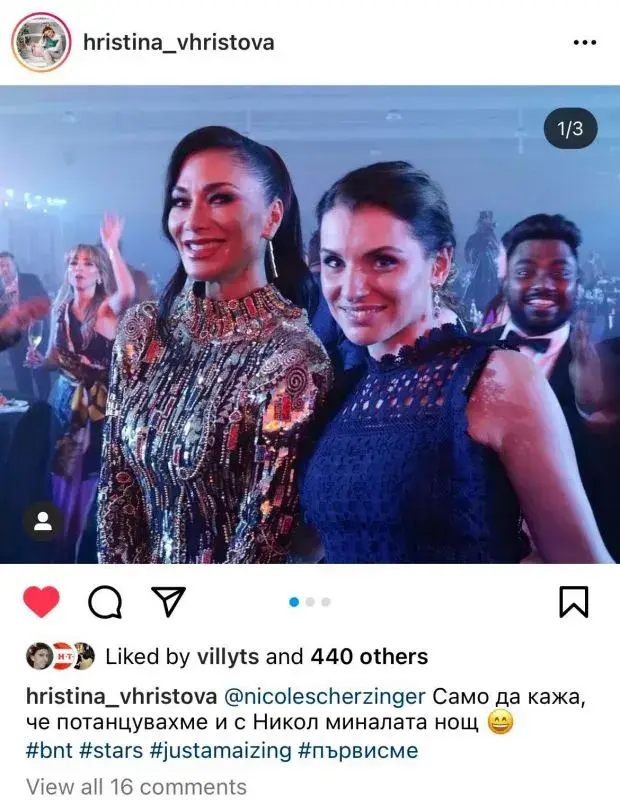 Пред Христина Христова и операторът Станислав Ангелов застанаха Никол Шерцингер, Кларънс Зеедорф, Ева Лонгория и бившият италиански премиер Матео Ренци. \"Само да кажа, че с Никол потанцувахме миналата нощ\", пише Христина, предава България днес.