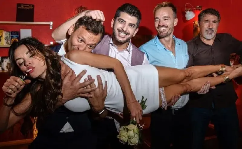 Орлин Павлов, Александър Кадиев, Ники Илиев и Башар Рахал награбиха колежката си, докато тя отегчено си пали цигара, пише „България Днес“.