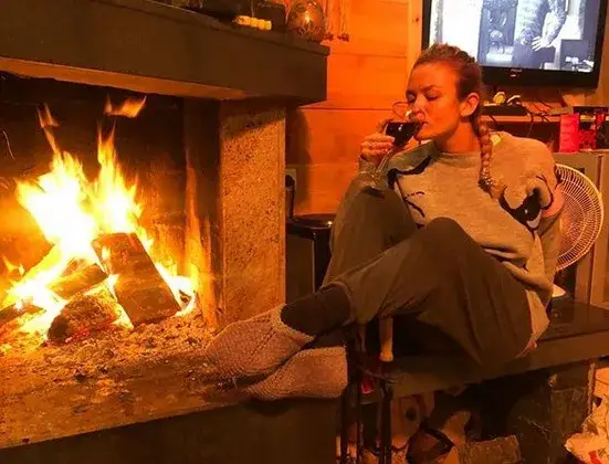 Шармантната Яна Димитрова изненада своите приятели със селски терлици, с които се грее до камината вкъщи.