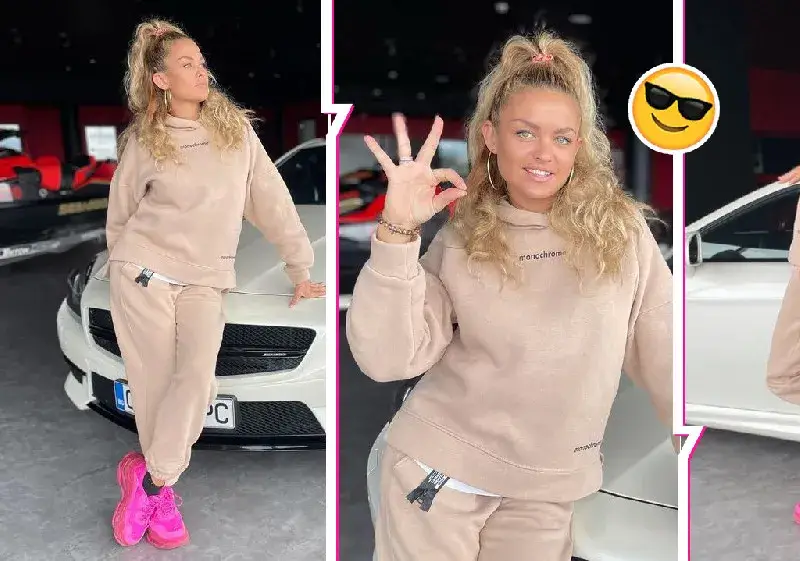 Танцьорката се пусна пред муцуната на бяло возило и изглежда повече от доволна. Феновете веднага заподозряха, че това е подарък от половинката й - ресторантьорът Петко Димитров.
