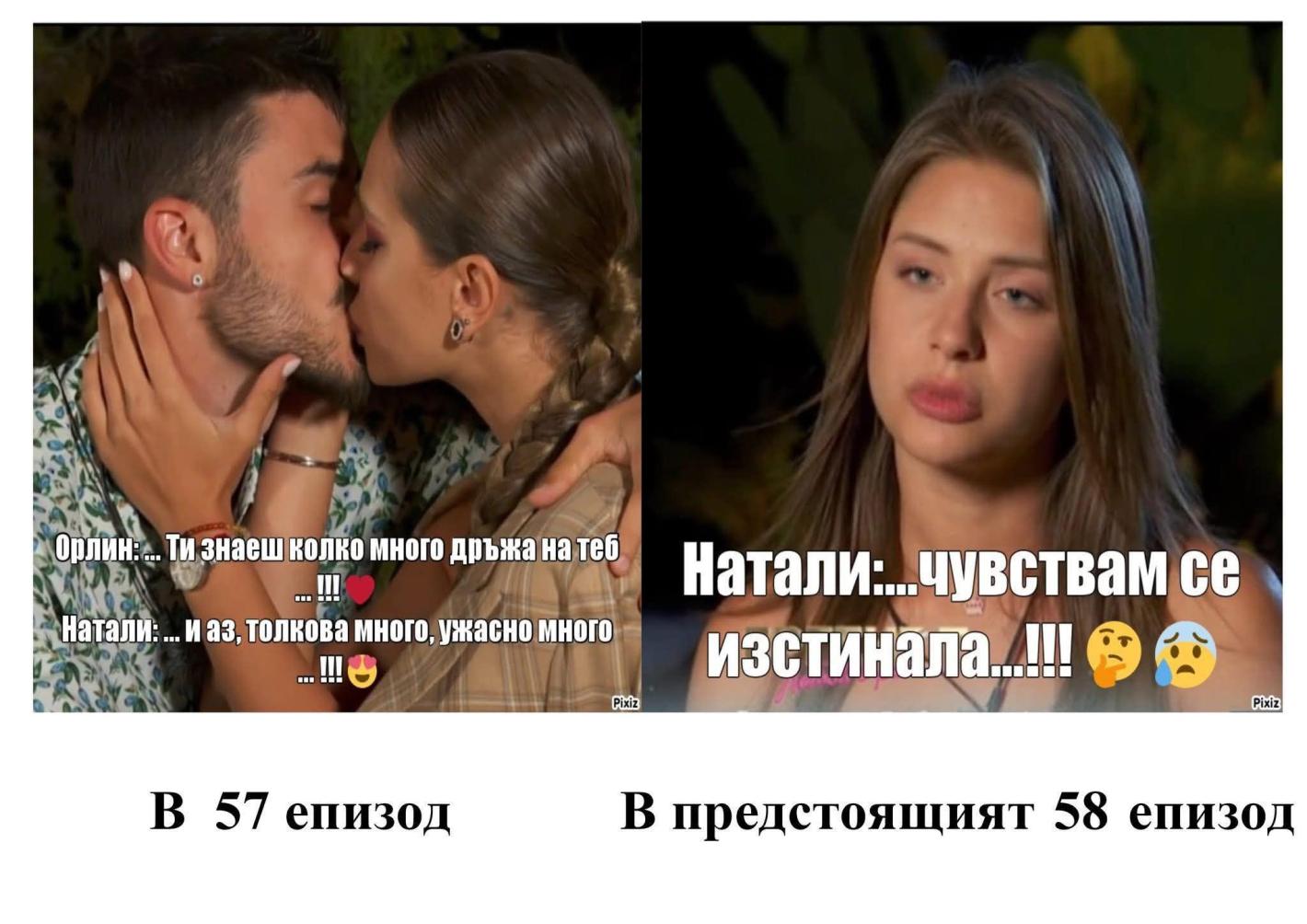 Не е чудно, че сълзите на Орлин пред камерите разплакаха феновете и отключиха нова вълна от хейт. Мнението на хората е, че Натали не е постоянна и не уважава чувствата на мъжете в шоуто. Хейта не спира, а мемета, насочени към нея, продължават да заливат социалните мрежи.