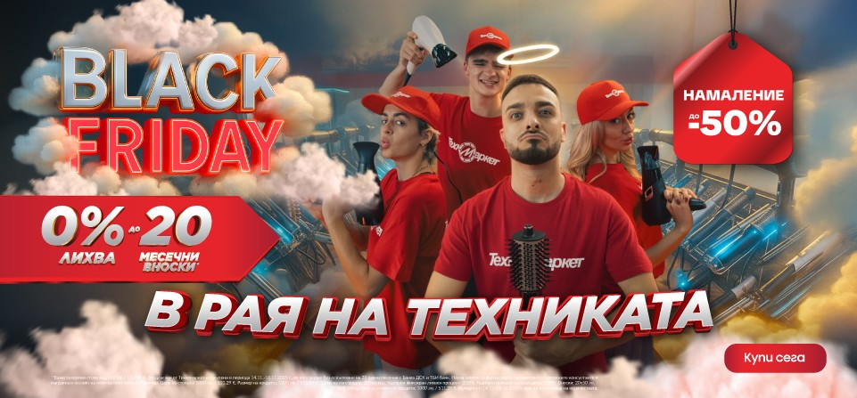 На сайта на Техномаркет вече можеш да намериш специална секция „Black Friday“, където се показват реални намаления и 0% лихва. Изборът е огромен: