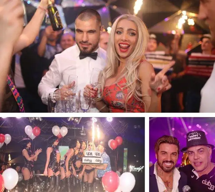 Бившият футболист, на който му предстои да се върна в отбора на свободните мъже, бе заобиколен от доста изкушения - от сцената сексапилните танцьорки на \"Клуб 33\" изкушаваха не само набожния Благо, но и останалите мъже със съблазнителни тела и танци, предават от ПИК.