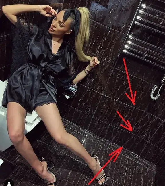 Очевидно Злати се е опитала и да прикрие наедрелите си форми след бременността, тъй като допълнително е обработвала снимката. Тя се е вталила чрез фотошоп, но доста нескопосано и е изкривила брутално фугите и стените на банята.